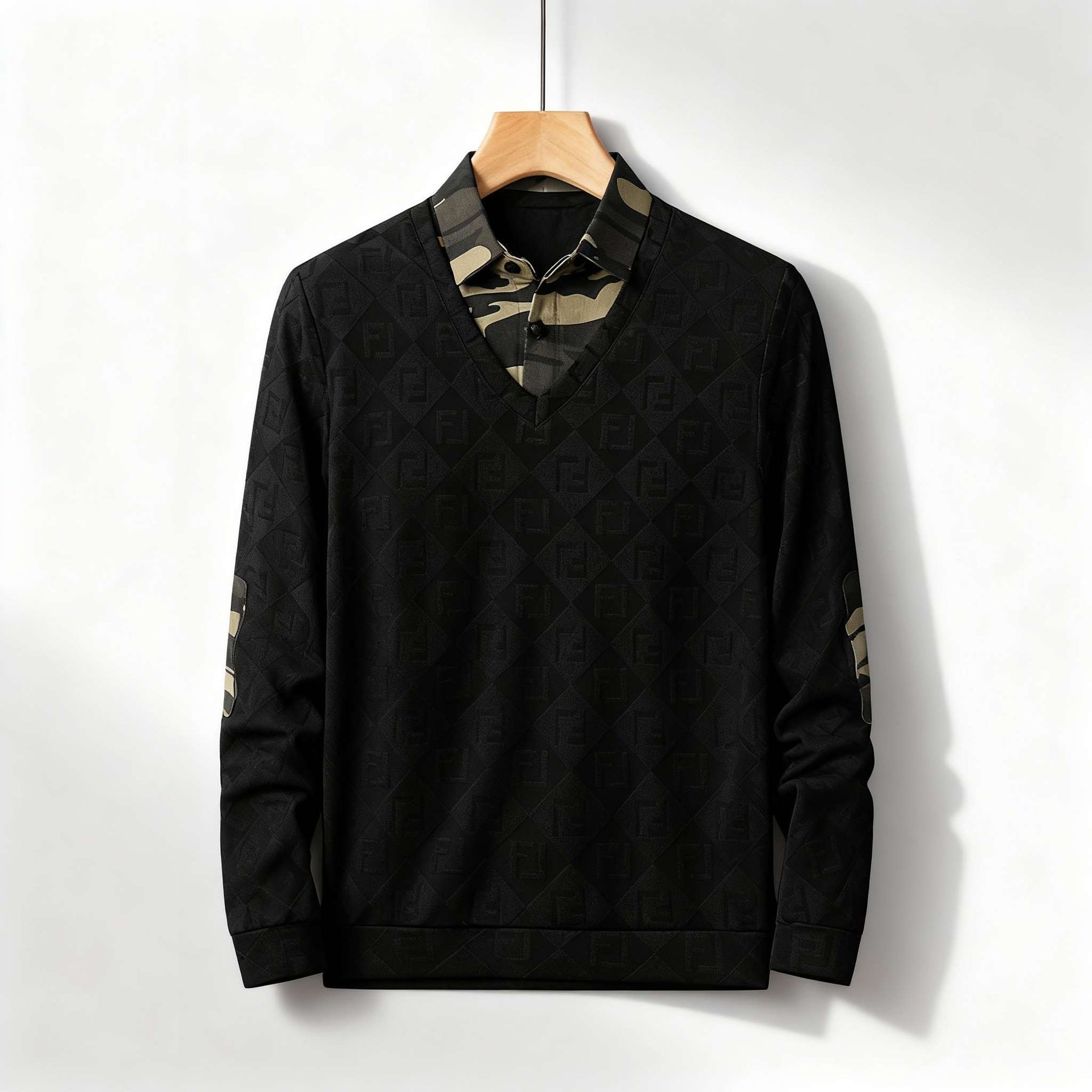 Made with an integrated camouflage collar and matching elbow patches for a layered appearance. The midweight knit provides warmth and a firm, comfortable hold, finished with ribbed edges for a secure fit. Works well with jeans or cargo pants in everyday wear.