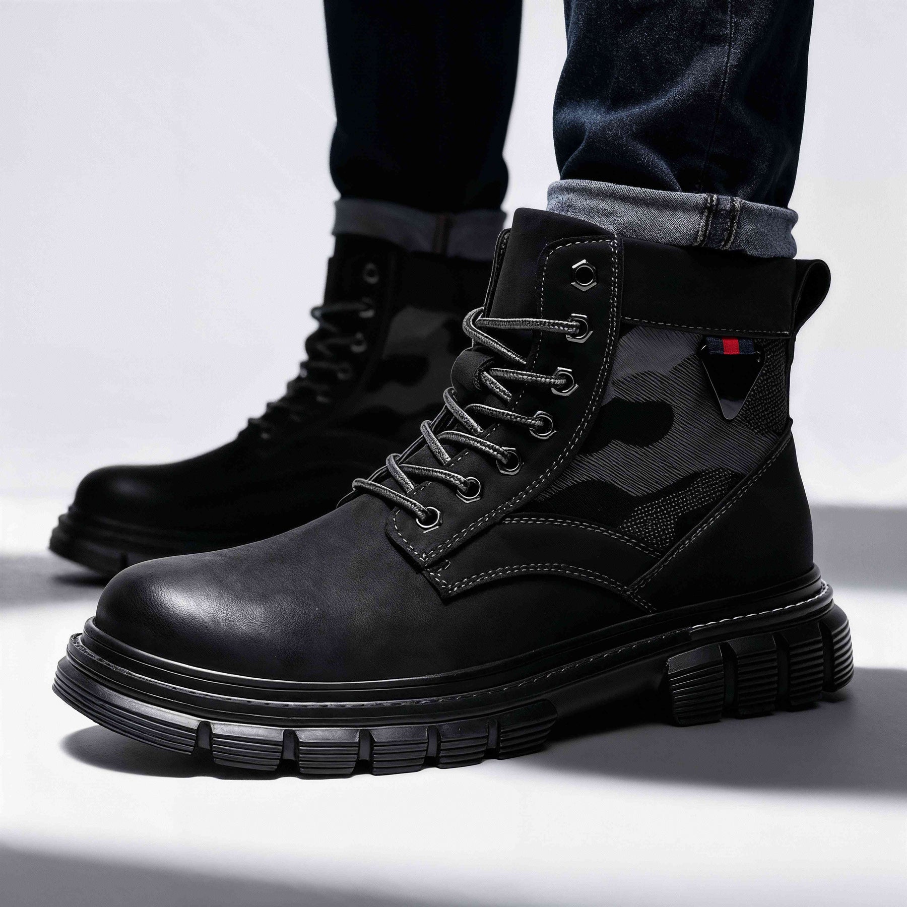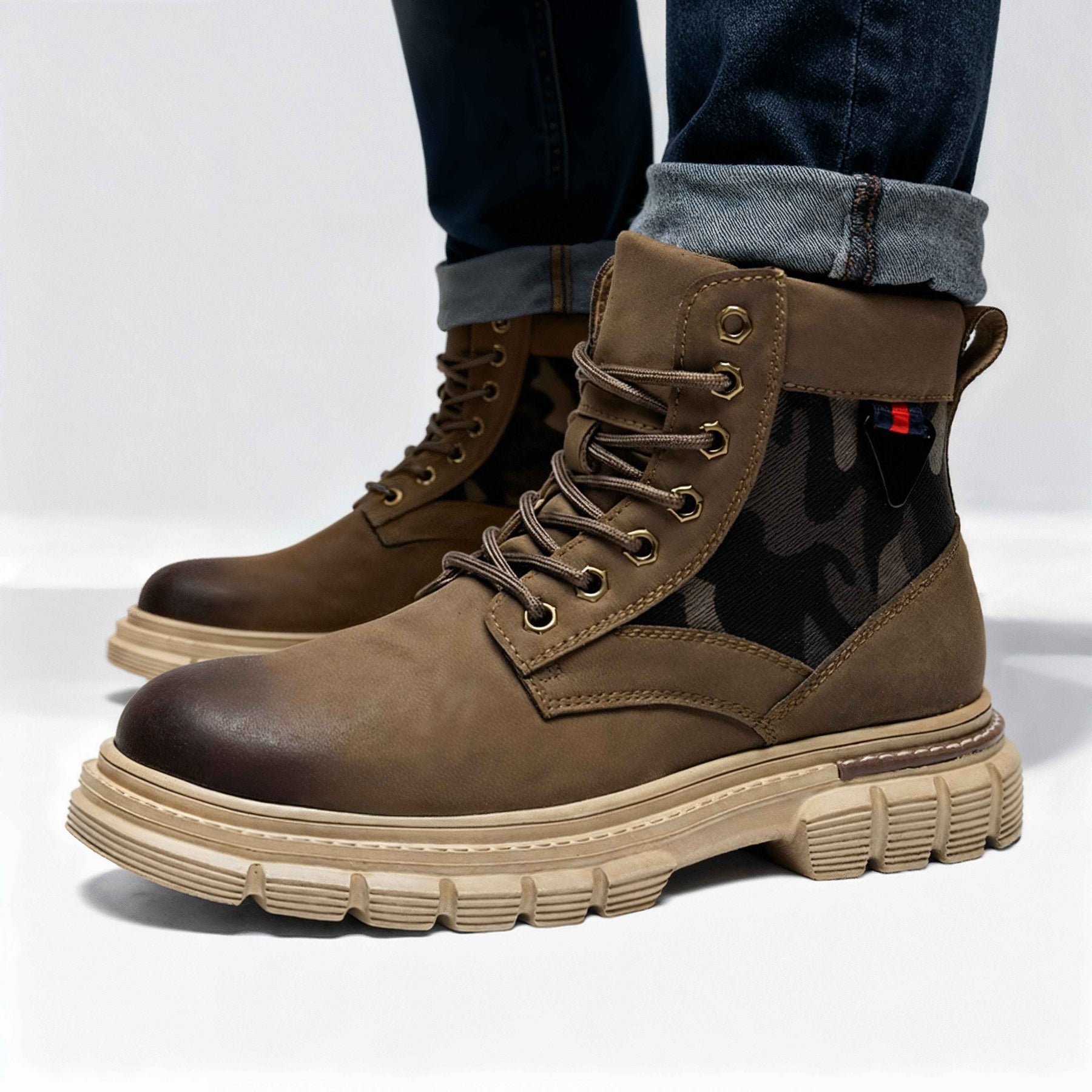 These Rocco 47th boots are inspired by a patriotic design. The camo patch adds an outlaw character to these rugged boots, equipped with a soft cushioned insole for lasting comfort. The advanced heavy duty sole is built for maintaining grip on uneven terrain. Strong, reliable laces with reinforced eyelets provide a secure and comfortable fit.